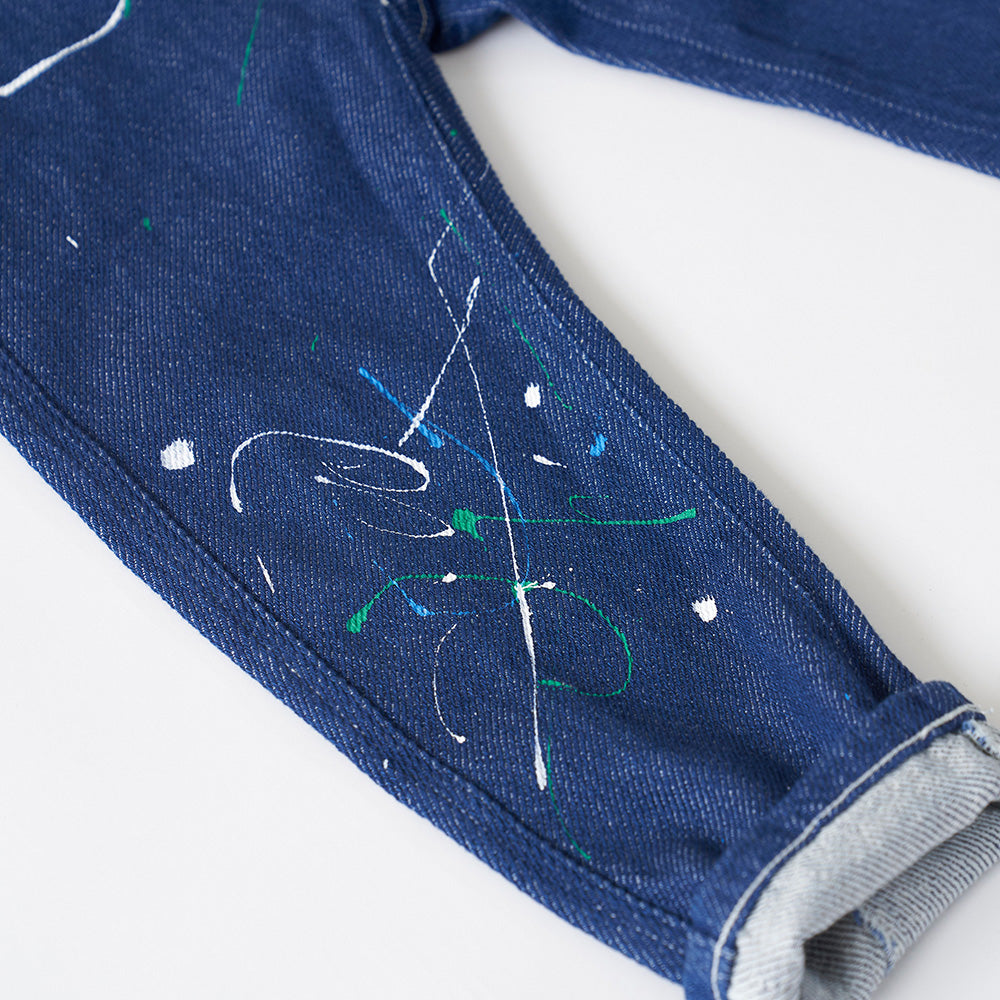 男女通用的锥形牛仔裤,独特的后面板拼接拼接。由于其宽松的穿着舒适性和柔软的皮肤触感而受欢迎。